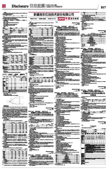 新疆准东石油技术股份有限公司2015年度报告摘要
