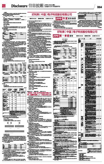 好利来(中国)电子科技股份有限公司2015年度报告摘要