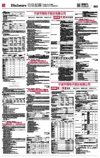宁波华翔电子股份有限公司2015年度报告摘要 2016-04-27 来源:证券时报网 作者: