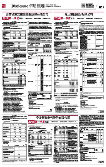 吉林省集安益盛药业股份有限公司2016第一季度报告 2016-04-27 来源:证券时报网 作者:
