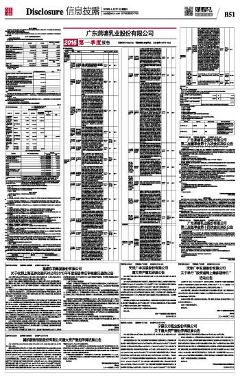 | 广东燕塘乳业股份有限公司2016第一季度报告 | 2016-04-27 |