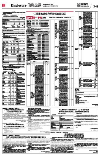 | 江苏霞客环保色纺股份有限公司2016第一季度报告 | 2016-04-27 |