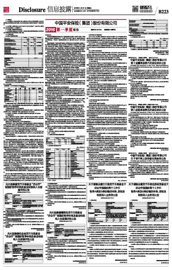 中国平安保险(集团)股份有限公司2016第一季度报告 2016-04-27 来源:证券时报网 作者: