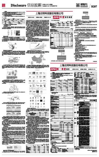 上海北特科技股份有限公司2016第一季度报告 2016-04-27 来源:证券时报网 作者: