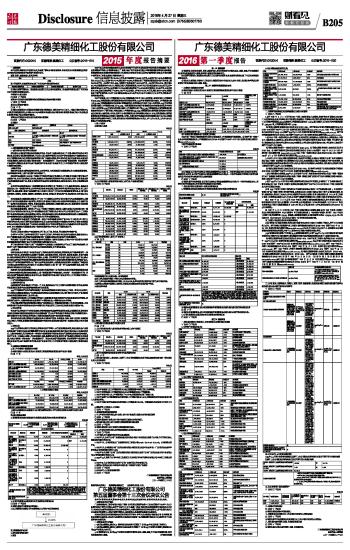 广东德美精细化工股份有限公司2016第一季度报告 2016-04-27 来源:证券时报网 作者: