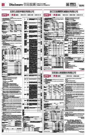 北京久其软件股份有限公司2016第一季度报告 2016-04-27 来源:证券时报网 作者: