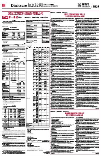 黑龙江京蓝科技股份有限公司2016第一季度报告