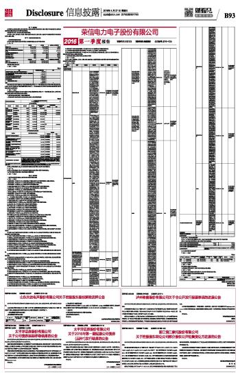 荣信电力电子股份有限公司2016第一季度报告