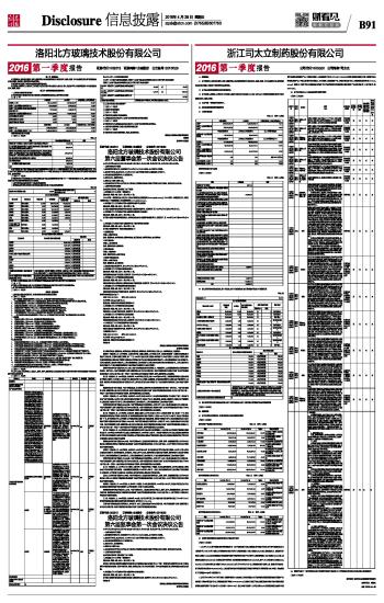 浙江司太立制药股份有限公司2016第一季度报告 2016-04-28 来源:证券时报网 作者: