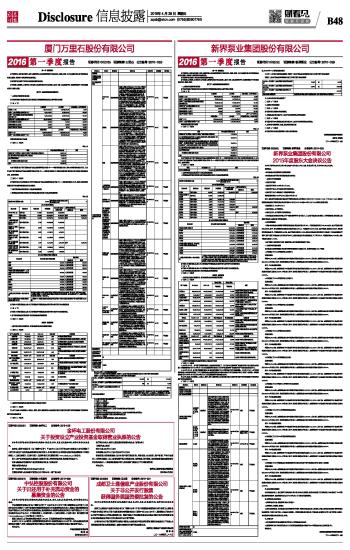 | 新界泵业集团股份有限公司2016第一季度报告 | 2016-04-28 | |