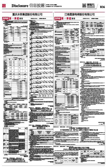 重庆水务集团股份有限公司2016第一季度报告 2016-04-28 来源:证券时报网 作者: