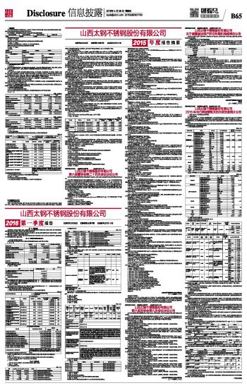 山西太钢不锈钢股份有限公司2016第一季度报告 2016-04-28 来源:证券时报网 作者: