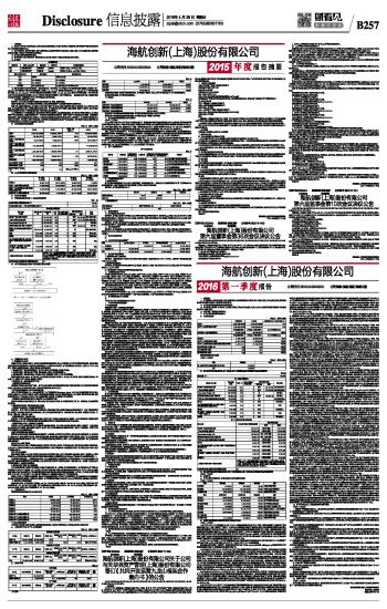 海航创新(上海)股份有限公司2016第一季度报告 2016-04-28 来源:证券时报网 作者: