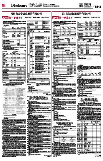 郴州市金贵银业股份有限公司2016第一季度报告 2016-04-28 来源:证券时报网 作者: