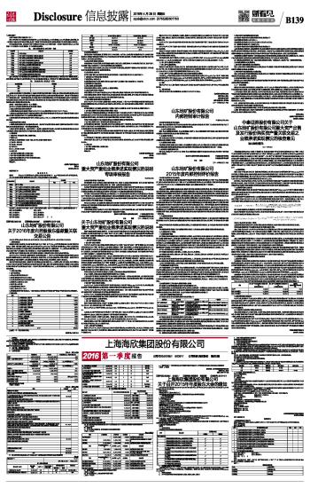 上海海欣集团股份有限公司2016第一季度报告 2016-04-28 来源:证券时报网 作者: