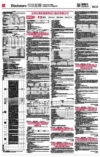 北京弘高创意建筑设计股份有限公司2016第一季度报告