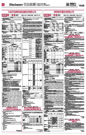 大连天宝绿色食品股份有限公司2016第一季度报告