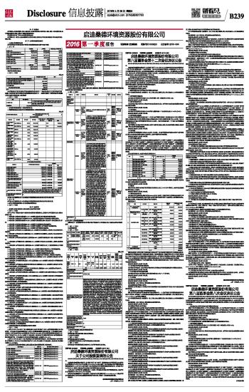 启迪桑德环境资源股份有限公司2016第一季度报告