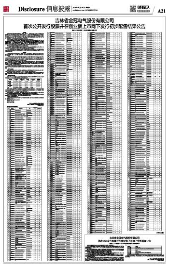 首次公开发行股票并在创业板上市网下发行初步配售结果公告