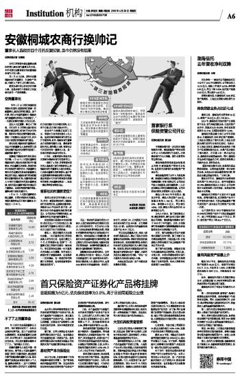 首只保险资产证券化产品将挂牌首期规模为5亿元,优先级收益率为3.8%,高于目前同期限企业债 2016-04-29 来源:证券时报网 作者:潘玉蓉