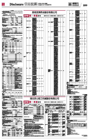 昆明龙津药业股份有限公司2016第一季度报告 2016-04-29 来源:证券时报网 作者: