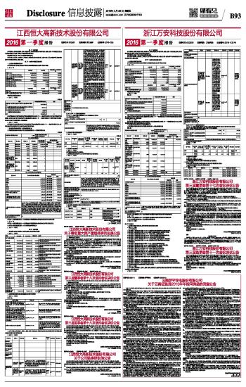 江西恒大高新技术股份有限公司2016第一季度报告 2016-04-29 来源:证券时报网 作者: