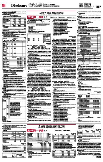 利达光电股份有限公司2016第一季度报告 2016-04-29 来源:证券时报网 作者: