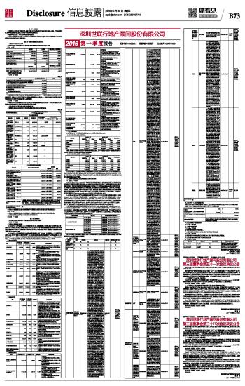 深圳世联行地产顾问股份有限公司2016第一季度报告 2016-04-29 来源:证券时报网 作者:
