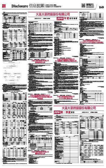 大连大显控股股份有限公司2015年度报告摘要 2016-04-29 来源:证券时报网 作者:
