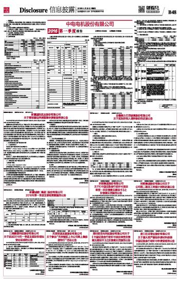 | 中电电机股份有限公司2016第一季度报告 | 2016-04-29 |