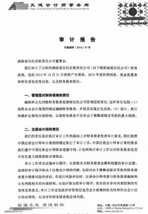湖南省信托有限责任公司2015年年度报告摘要 2016-04-29 来源:证券时报网 作者: