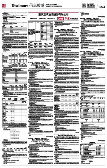 重庆三峡油漆股份有限公司2015年度报告摘要 2016-04-29 来源:证券时报网 作者: