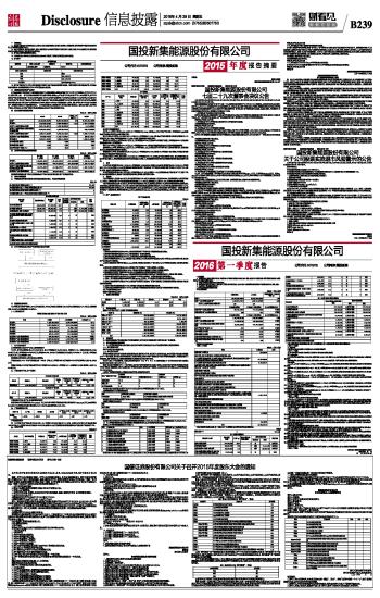 国投新集能源股份有限公司2015年度报告摘要 2016-04-29 来源:证券时报网 作者: