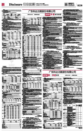 广东科达洁能股份有限公司2015年度报告摘要 2016-04-29 来源:证券时报网 作者: