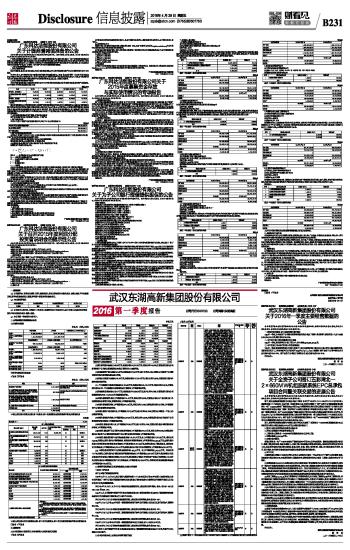 武汉东湖高新集团股份有限公司2016第一季度报告 2016-04-29 来源:证券时报网 作者: