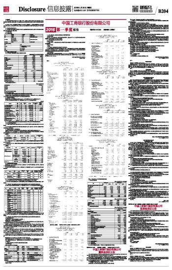 中国工商银行股份有限公司2016第一季度报告 2016-04-29 来源:证券时报网 作者: