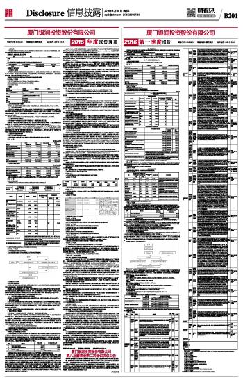 厦门银润投资股份有限公司2015年度报告摘要 2016-04-29 来源:证券时报网 作者: