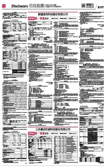 山东豪迈机械科技股份有限公司2016第一季度报告 2016-04-29 来源:证券时报网 作者:
