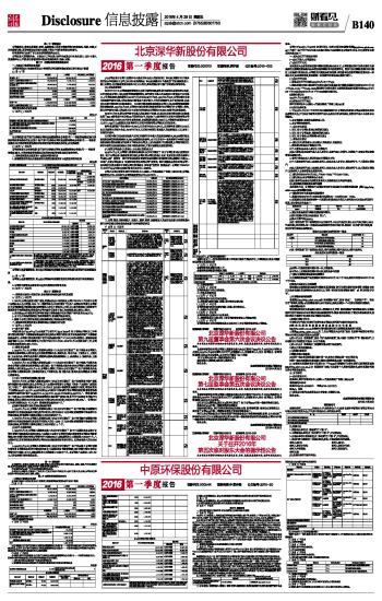 中原环保股份有限公司2016第一季度报告 2016-04-29 来源:证券时报网 作者: