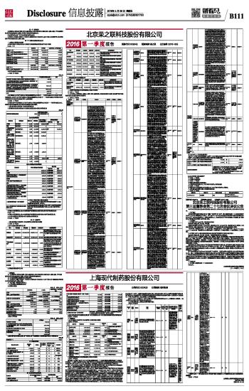 北京荣之联科技股份有限公司2016第一季度报告 2016-04-29 来源:证券时报网 作者: