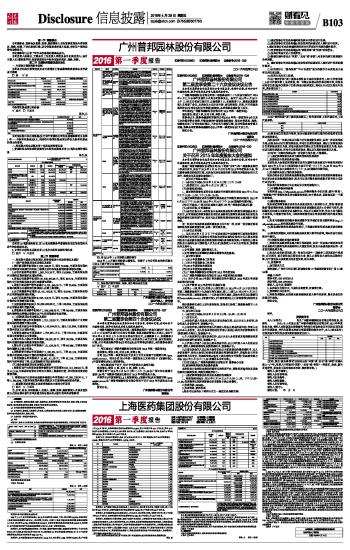 上海医药集团股份有限公司2016第一季度报告 2016-04-29 来源:证券时报网 作者: