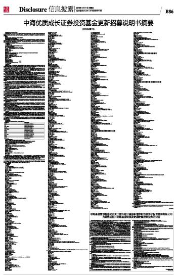 中海优质成长证券投资基金更新招募说明书摘要(2016年第1号) 2016-05-11 来源:证券时报网 作者: