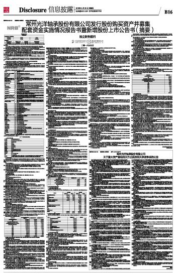 | 常州光洋轴承股份有限公司发行股份购买资产并募集 配套资金实施情况报告书暨新增股份上市公告书(摘要) | 2016-05-20 |