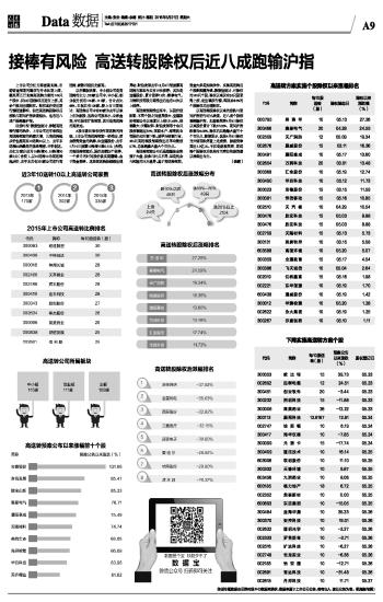 接棒有风险 高送转股除权后近八成跑输沪指 2016-05-21 来源:证券时报网 作者: