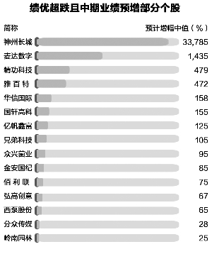 4月15日以来,市场经过新一轮下跌后,空头情绪得到一定程度释放,市场在弱势平衡中缩量调整。在A股加入MSCI新兴市场指数预期升温、沪股通资金不断流入、深港通年内开通等因素影响下,具有业绩支撑且超跌个股有望受到市场青睐。 连续收出三根阳线后,昨日大盘再度陷入调整。上周,沪指日均成交量1328亿元,刷新近两年来低量纪录。进入本周后,低迷态势依然延续,周一,沪指成交1400亿元,昨日成交1211亿元,创年初熔断以来新低。 存量博弈格局下,被国内投资者称为海外“聪明钱”的沪股通资金,是市场关注焦点。自上周一以来,沪股通已经连续7日净流入,累计流入25.26亿元。作为外资代表,沪股通资金擅长精准抄底,对于具有业绩支撑的绩优股往往情有独钟。 证券时报·数据宝在目前已经公布中期业绩预告且报喜(预增、预盈)的公司中,进一步筛选真正具有成长性的超跌个股。具体来看,筛选指标为:一、2014年和2015年盈利且同比增长超20%;一季度盈利且同比增长;中期业绩预告类型为预增或预盈;二、4月15日以来跌幅超10%;三、4月15日以来累计换手率超过100%。 经过以上3个条件筛选后,21只个股浮出水面。在宏观经济增速放缓背景下,依然保持稳定增长实属不易。从中期业绩增幅来看,19家公司明确公布业绩增幅范围,其中,麦达数字、精功科技、雅百特等8股预计增幅翻倍。 比如雅百特,近年来业绩高速增长。2014年、2015年、今年一季度,业绩同比增幅分别为260%、151%、200%。根据中期业绩预告,由于下属子公司山东雅百特科技有限公司、上海孟弗斯新能源科技有限公司处于高速发展期,不断拓展业务,公司预计上半年同比增幅在448%至495%之间。 除雅百特外,国轩高科和兄弟科技同样堪称业绩高速增长典范,2014年、2015年、一季度、中期业绩预计增幅中间值均翻倍。 今年以来,新能源汽车产业受到国家政策面的支持力度进一步加强,以锂电池、充电桩为代表的相关产业链概念股表现抢眼。受益于产业发展良好态势,锂电池概念股国轩高科主营业务同比大幅增长,预计上半年净利润同比增长130%至180%。此外,在21股中,社保基金一季度现身6股前十大流通股东席位,国轩高科是唯一一只被社保基金增持翻倍个股。 在市场震荡下行过程中,换手率较大的个股,说明市场中不乏接手盘,或有主力资金积极开展自救行为的可能。从4月15日以来换手率来看,众兴菌业累计换手率高达403%,位居榜首。此外,雅百特、华信国际、弘高创意等6股换手率介于200%至400%之间。 从市场表现来看,4月15日以来,沪指累计下跌8.46%。21股中,华信国际、雅百特、游族网络等9股跌幅远超沪指同期,均下跌超过20%。 股价向左业绩向右 三招狩猎绩优超跌股 600847 002529 002295 002576 002330 002231 000996 002645 002495 600538 002362 002337 000613 002282 600137 002629 002148 002058 600311 603333 600615 600746 002473 002213 002578 600370 600232 绩优超跌个股4月15日以来跌幅排名 万里股份 海源机械 精艺股份 通达动力 得 利 斯 奥维通信 中国中期 华宏科技 佳隆股份 国发股份 汉王科技 赛象科技 大东海A 博深工具 浪莎股份 仁智油服 北纬通信 威 尔 泰 荣华实业 明星电缆 丰华股份 江苏索普 圣 莱 达 特 尔 佳 闽发铝业 三 房 巷 金鹰股份 6.84 20.04 14.00 19.54 22.89 19.55 13.11 11.70 6.50 26.15 12.93 18.66 26.52 24.01 16.47 14.19 6.21 19.38 9.76 14.36 23.78 25.01 15.10 18.19 22.46 11.28 24.85 45.21 41.89 37.89 32.69 49.70 46.38 43.19 40.36 39.56 47.93 46.97 42.49 34.95 38.95 27.79 47.54 41.58 29.87 36.94 36.92 32.25 26.87 40.35 40.60 35.91 42.73 47.19 -38.83 -36.80 -36.46 -36.15 -35.50 -34.34 -34.15 -33.48 -32.11 -31.61 -31.44 -30.58 -30.40 -28.76 -28.35 -28.32 -27.78 -27.23 -26.49 -26.20 -24.78 -24.66 -24.22 -23.60 -22.30 -21.73 -6.03 代码 简称 中期业绩预告类型 预计增幅 中值 (%) 4月15日 以来涨跌幅 (%) 4月15日 以来换手率 (%) 002018 002323 002174 002536 300023 002504 002657 002717 002006 002601 002027 002636 002270 002137 300379 002562 002019 000018 002074 002772 002139 华信国际 雅 百 特 游族网络 西泵股份 宝德股份 弘高创意 中科金财 岭南园林 精功科技 佰 利 联 分众传媒 金安国纪 法因数控 麦达数字 东 方 通 兄弟科技 亿帆鑫富 神州长城 国轩高科 众兴菌业 拓邦股份 预增 预增 预增 预增 预增 预增 预增 预增 预增 预增 预增 预增 预增 预增 预增 预增 预增 预盈 预增 预增 预增 158 472 13 65 — 67 15 25 479 75 28 85 20 1,435 — 105 125 33,785 155 95 20 -58.54 -32.59 -26.35 -25.86 -24.46 -24.41 -23.79 -23.66 -21.09 -19.07 -17.60 -16.84 -16.82 -16.74 -16.02 -15.63 -15.00 -14.69 -11.94 -11.00 -10.06 264.60 312.10 159.36 196.06 235.34 237.65 137.33 230.59 107.62 230.64 107.17 165.25 132.67 155.35 151.06 140.43 144.72 151.45 170.47 402.69 123.63 (本版专题数据由证券时报中心数据库提供,数据来源于上市公司公告。 梁旖旎/制图) 本版导读: