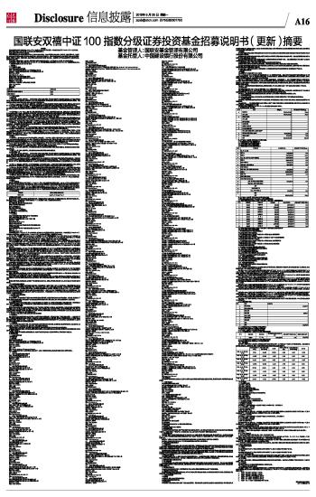 国联安双禧中证100指数分级证券投资基金招募说明书(更新)摘要 2016-05-30 来源:证券时报网 作者:
