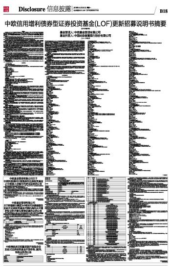 中欧信用增利债券型证券投资基金(LOF)更新招募说明书摘要