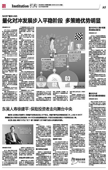 编者按:在保险公司高管中,和徐建平有类似经历的人并不多见。徐建平最早在苏州财政系统工作,上世纪90年代下海筹建证券公司即东吴证券的前身,2003年任东吴基金筹备组组长,并担任东吴基金总裁近十年后转战东吴人寿。 在证券、基金、保险三大行业“兜了一圈”的徐建平,对于保险行业的认识有着独特视角。 周靖宇/制图 证券时报记者 潘玉蓉