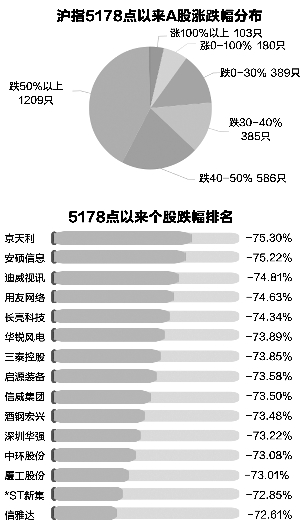 A股一遇急跌,便想到“5·30”暴跌。然而二者根本不在一个量级。从过程上看,本轮熊市的调整过程带来的伤情甚至远远超过3次“5·30”暴跌,其中部分股票3次调整过程中均超跌50%以上。 上证综指在2800点附近盘桓3周,成交持续在地量标准。A股市场仍未摆脱低迷态势的现状,急跌的隐忧仍挥之不去。 2007年“5·30”暴跌期间,上证综指由4300点上方调整到3400点左右,仅仅用了5个交易日,最大跌幅21%左右。从个股调整程度上来看,数据宝统计,380只个股期间(5月29日至6月5日)最大跌幅超过40%,437只个股最大跌幅在30-40%之间,合计占交易个股比例达到61.9%。 短时间遭遇如此重大调整,且调整覆盖面如此之大,也怪不得“5·30”暴跌载入史册。但是,跟本轮熊市相比,不论是结果还是过程,“5·30”暴跌都只能算是小儿科了。结果已经看到了,“5·30”暴跌后股市仍然大涨了1倍多,但本轮熊市仍在延续着。 第一轮暴跌,上证综指从去年6月12日最高点位5178点跌至当年7月9日最低点位3373点,仅用了18个交易日,跌幅高达34.85%。数据宝统计显示,本轮熊市第一轮暴跌中,1032只个股期间(去年6月1日至7月9日)最大跌幅超过60%,还有805只个股最大跌幅超过50%。也就是说,超过74%的个股在第一轮暴跌中惨遭腰斩。 第二轮暴跌,上证综指从去年8月18日最高点位4006点跌至当年8月26日最低点位2850点,仅用了7个交易日,跌幅高达28.85%。与第一轮暴跌相同的是,除了调整时间稍长一点外,个股调整幅度面积依然较大。其中,605只个股期间(去年8月18日至9月2日)最大跌幅超过50%,超过71%的个股在第二轮暴跌中超跌40%以上。 第三轮暴跌,上证综指从去年12月23日最高点位3684点跌至今年1月27日最低点位2638点,用了25个交易日,跌幅高达28.4%。其中,1429只个股期间最大跌幅超过40%,接近90%的个股在第三轮暴跌中超跌30%以上。 本轮熊市中的每轮小熊市,除了调整时间不及“5·30”暴跌迅速外,大盘调整幅度、个股调整幅度及面积有过之而无不及。其中,有的个股甚至在三轮调整中股价均超跌50%以上。数据宝统计,以上述三轮调整期间超跌幅度看,31只个股在此期间超跌50%以上。其中,利达光电在第一轮暴跌中超跌74%,第二轮调整超跌51%,第三轮调整同样超跌51%左右。 这类股票并非是调整最大的,比如深深宝A甚至在反弹过程中一度逼近历史新高,最新价较历史高点折价率也相对较低。以5178点为起点,京天利、迪威视讯、安硕信息、华锐风电、长亮科技等个股仍折价超过70%。 有超跌的,也有逆势上扬的个股。数据宝统计,剔除2015年以来上市次新股,沪深两市仍有148只个股5178点以来逆势上涨。防御型行业成为最耀眼板块,医药生物、农林牧渔、家电等均贡献较多个股。除了防御行业,锂电池等板块最牛,天赐材料、多氟多、赣锋锂业等个股频频创出历史新高。 沪指5178点以来三轮调整跌幅均超50%个股 代码 简称 第一轮 涨跌幅(%) 第二轮 涨跌幅(%) 第三轮 涨跌幅(%) 磨底行情中机构在抢筹这些白马股 002189 300318 300333 600503 002232 300400 300248 300270 002243 300290 300308 300268 600179 002149 000158 300275 002086 300356 600865 000019 002524 000605 002576 002280 300384 300165 300288 002161 300147 利达光电 博晖创新 兆日科技 华丽家族 启明信息 劲拓股份 新 开 普 中威电子 通产丽星 荣科科技 中际装备 万福生科 *ST 黑化 西部材料 常山股份 梅 安 森 东方海洋 光一科技 百大集团 深深宝A 光正集团 渤海股份 通达动力 联络互动 三联虹普 天瑞仪器 朗玛信息 远 望 谷 香雪制药 -74.16 -71.99 -71.63 -70.67 -69.44 -68.95 -67.18 -66.93 -66.36 -66.12 -66.05 -65.76 -65.75 -65.74 -64.81 -64.16 -64.08 -63.57 -62.41 -62.00 -60.55 -60.20 -59.74 -58.87 -57.13 -56.95 -56.37 -54.75 -52.46 -51.28 -57.95 -53.96 -53.48 -52.00 -58.26 -61.66 -50.67 -51.33 -53.34 -54.65 -52.95 -53.46 -50.57 -53.06 -52.11 -50.18 -64.12 -54.43 -51.37 -50.77 -50.15 -56.87 -61.98 -62.16 -58.16 -52.59 -57.45 -53.47 -51.06 -51.53 -57.23 -50.78 -50.22 -56.18 -51.05 -50.00 -50.18 -52.54 -50.31 -54.02 -50.57 -50.64 -51.74 -53.82 -52.54 -51.38 -50.90 -51.98 -50.00 -58.08 -52.37 -50.67 -53.85 -50.00 -51.78 -54.38 -50.00 白马股机构净买入金额排行 证券时报记者 李千