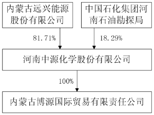 证券代码:000683 证券简称:远兴能源 公告编号:临2016-046 内蒙古远兴能源股份有限公司关于控股 子公司增资兴安盟博源化学有限公司的 公告 本公司及董事会全体成员保证信息披露内容的真实、准确和完整,没有虚假记载、误导性陈述或者重大遗漏。 一、释义 除非另有说明,以下简称在本议案中的含义如下: 1、本公司、公司:内蒙古远兴能源股份有限公司 2、中源化学:河南中源化学股份有限公司 3、兴安化学:兴安盟博源化学有限公司 二、对外投资概述 1、兴安化学为本公司控股子公司中源化学的全资子公司,本公司持有中源化学81.71%的股份,中源化学持有兴安化学100%的股份。兴安化学在建的“年产30万吨合成氨、52万吨多用途尿素项目”是2014年非公开发行股票的募投项目,公司募集资金总额105,035.46万元,其中83,517.52万元用于“年产30万吨合成氨、52万吨多用途尿素项目”。截至2015年12月31日,该募投项目募集资金实际使用金额为69,531.11万元,尚未使用的募集资金净额为13,986.41万元。该项目主要产品为年产30万吨合成氨、52万吨多用途尿素。 根据兴安化学多用途尿素项目的进展情况及资金需要,中源化学拟以现金人民币135,000万元对兴安化学增资,本次增资按照注册资本的价格增资,增资完成后,兴安化学注册资本由96,000万元增至231,000万元。 2、本次交易不构成关联交易,本次增资经本公司六届四十五次董事会审议通过,公司独立董事对此发表了独立意见并同意该议案。根据《深圳证券交易所上市规则》及《公司章程》的相关规定,本议案无需提交股东大会审议表决。 3、本次交易不构成《上市公司重大资产重组管理办法》规定的重大资产重组,不需要有关部门批准。 三、标的公司情况介绍 1、兴安化学基本情况 公司名称:兴安盟博源化学有限公司 企业性质:有限责任公司 注册地点:内蒙古自治区兴安盟经济技术开发区(葛根庙工业园区) 注册资本:96,000万元 法定代表人:杨明亮 成立时间:2011年6月28日 经营范围:煤制合成氨、尿素的生产与销售。 2、本次增资前后,兴安化学股权结构图 ■ 3、财务状况: 单位:万元 ■ 4、兴安化学目前在建“年产30万吨合成氨、52万吨多用途尿素项目”,项目主要产品为年产30万吨合成氨、52万吨多用途尿素。项目计划投资395,000万元,截止2016年5月底,兴安化学“年产30万吨合成氨、52万吨多用途尿素项目”累计完成投资185,036.73万元,后续项目投资通过中源化学增资和银行贷款完成,该项目预计2017年建成投产。 四、对外投资合同的主要内容 1、出资方:中源化学 2、被投资方:兴安化学 3、资金来源:自有资金 4、投资方式:现金出资 5、出资金额:135,000万元 6、中源化学本次认缴135,000万元,累计出资231,000万元,占注册资本的100%。 7、生效日期:本公司董事会批准之日。 五、对外投资的目的和对公司的影响 兴安化学属于本公司控股子公司中源化学的全资子公司,中源化学对其进行增资,有助于募投项目“年产30万吨合成氨、52万吨多用途尿素”的顺利推进。随着募投项目投产后上市公司合成氨及尿素的产品供给能力的显著提升,将有利于上市公司快速提升其行业地位,同时通过规模化的生产销售,强化区域竞争优势,发挥协同效应,提升企业对于下游区域内需求市场的整体议价能力,增强上市公司的盈利能力。本次增资符合公司的经营发展和长远规划。 六、对外投资存在的风险 兴安化学“年产30万吨合成氨、52万吨多用途尿素项目”投产后,产品价格可能受到多种行业需求、国民经济发展及国家产业政策等因素的影响而产生波动,从而也将影响本公司未来的经营业绩。 七、备查文件 1、公司六届四十五次董事会决议; 2、独立董事意见。 内蒙古远兴能源股份有限公司董事会 二○一六年五月三十一日